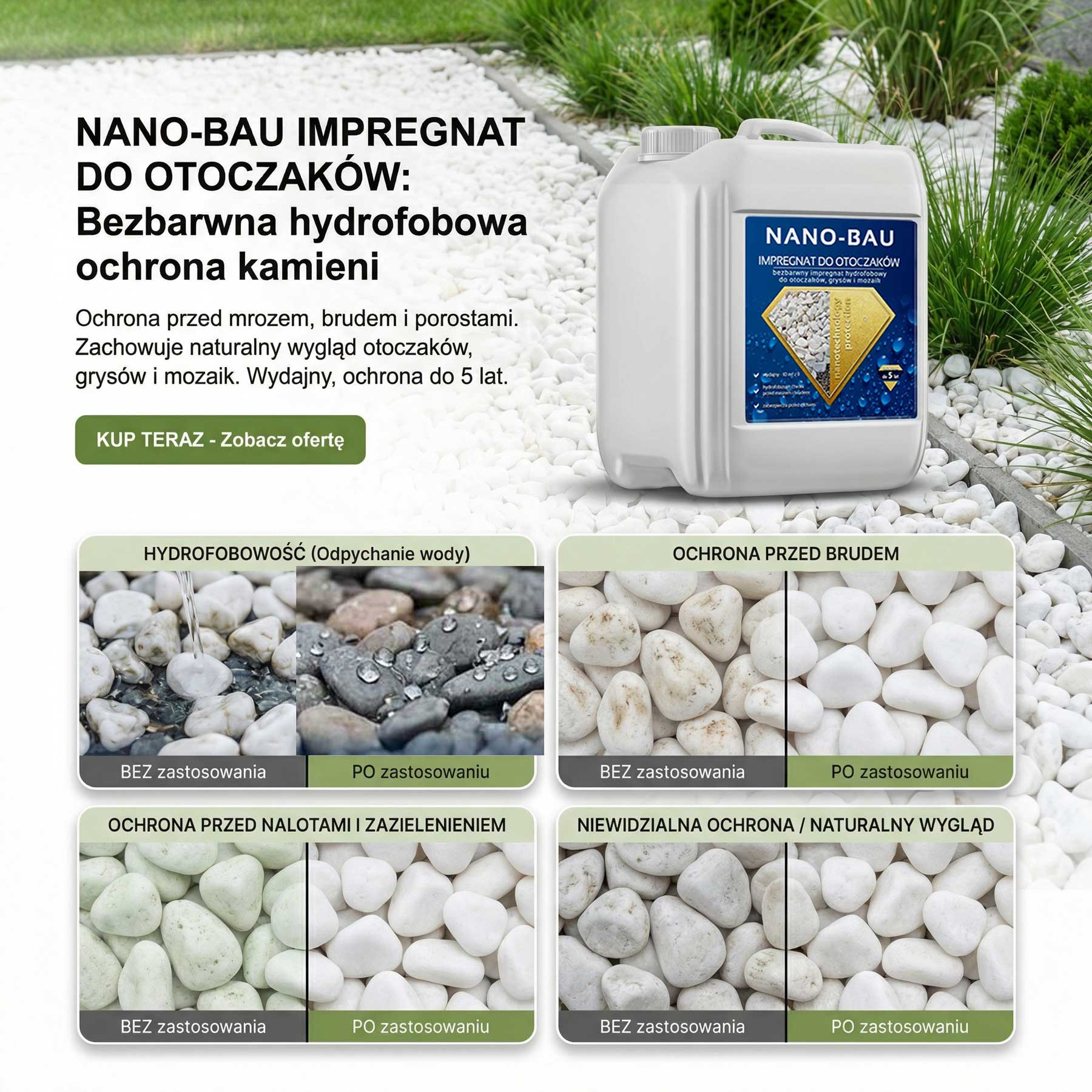 NANOBAU IMPREGNAT DO OTOCZAKÓW to skuteczne rozwiązanie dla osób poszukujących sposobu na zachowanie piękna i jasności swoich białych otoczaków. Dzięki niemu otoczaki będą prezentować się wspaniale przez wiele lat, niezależnie od wpływu czynników atmosferycznych. Warto zainwestować w ten impregnat i cieszyć się długotrwałym efektem, jaki zapewnia.